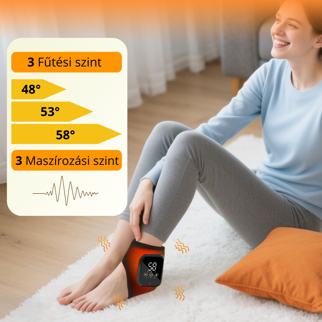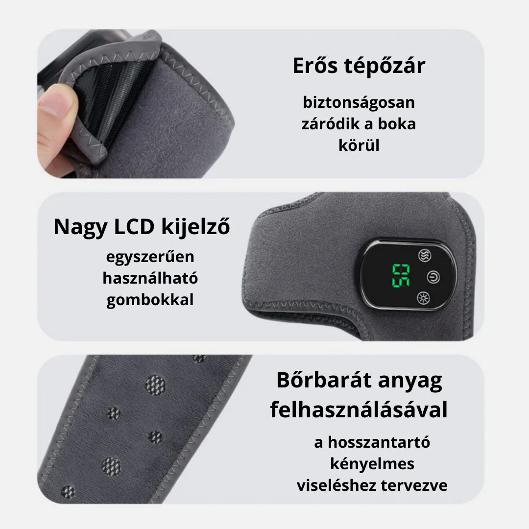 👉 Az erős tépőzárral könnyen rögzíthető a boka köré, nagy LED érintőképernyőn egyszerűen beállíthatod a fűtési hőmérsékletet és a vibráció mértékét.